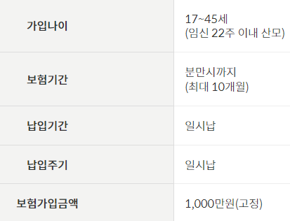 2. 특약 : 17 ~ 45세 22주 이내 임산부  (22주가 지나도 가입은 가능하지만 임신질환 특약은 가입 불가)