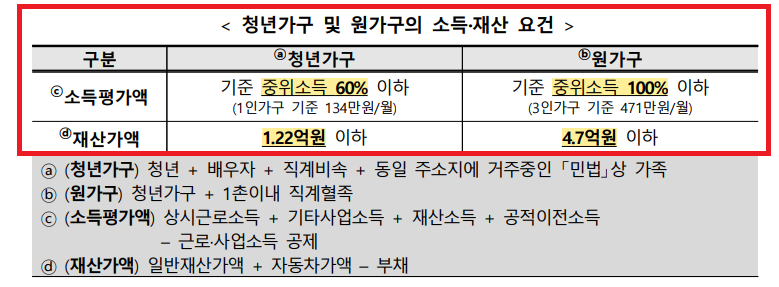 ※ 단, 30세 이상, 혼인 등 부모와 생계 및 거주를 달리하는 것으로 보이는 청년은 본인가구의 소득 및 재산만 확인한다.