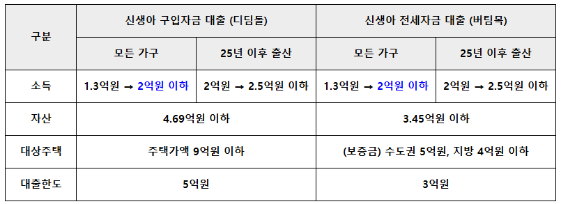 ▶ 신생아 특례 대출 소득 기준 완화